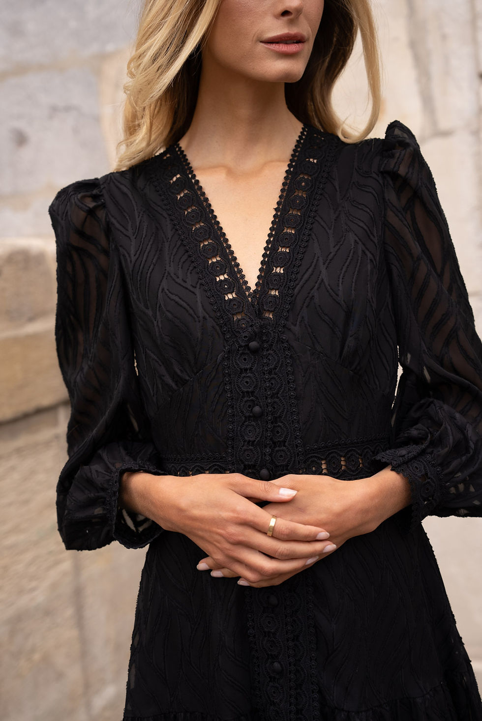 Choklate - Guipure blouse with 3/4 sleeves - black