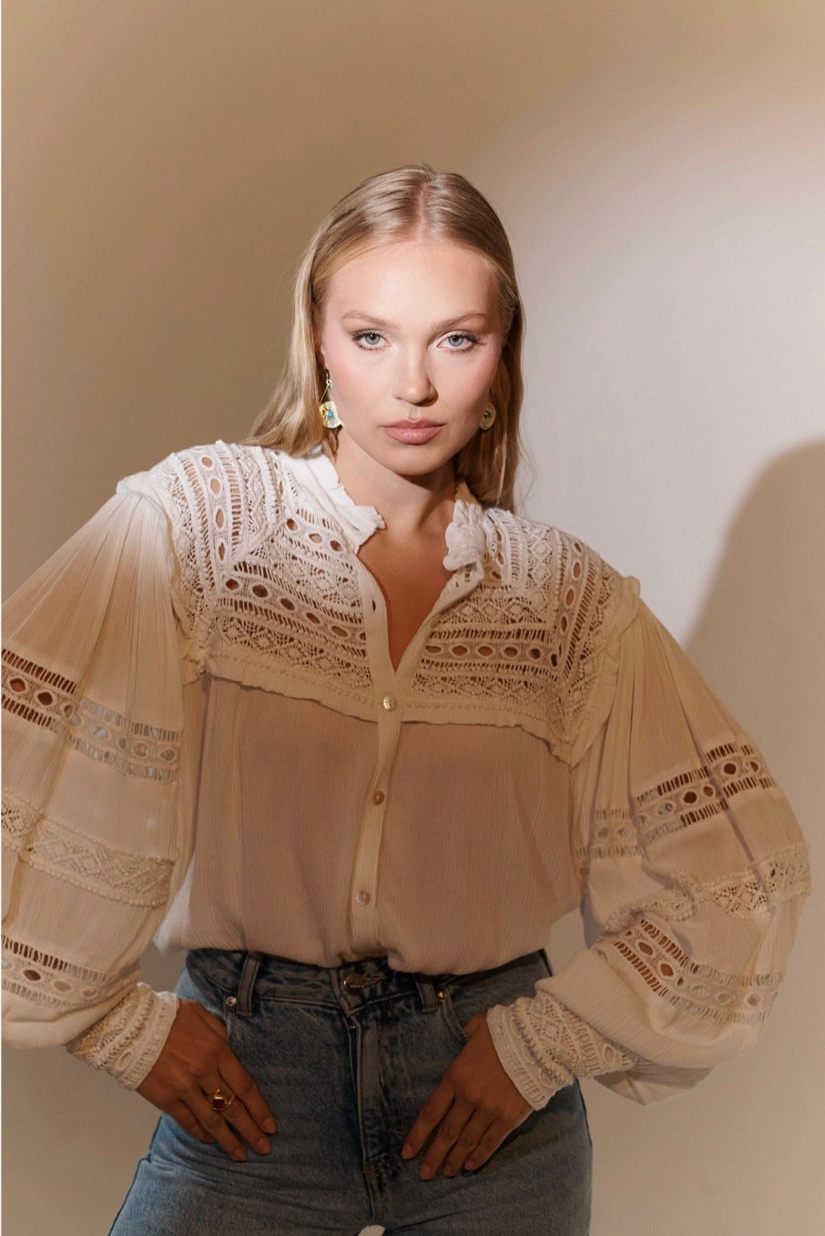 Angelica - Lace mid length blouse - Cream